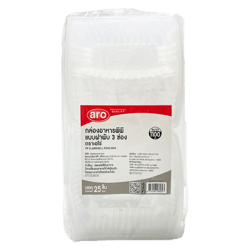 - ชื่อสินค้า: เอโร่ กล่องฝาพับพีพี 3 ช่อง 1.1 ล. x 25 - แบรนด์: เอโร่ - ปริมาณบรรจุ: 25 หน่วย