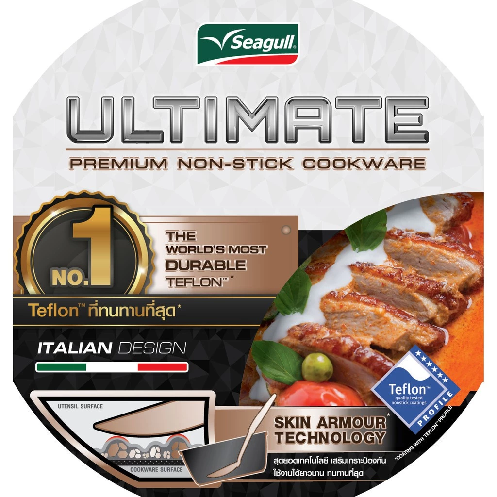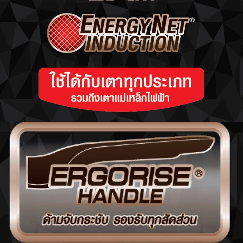 - กระทะ Ultimate ใช้ได้กับเตาทุกประเภท รวมถึงเตาแม่เหล็กไฟฟ้า ด้วยก้นกระทะรูปแบบใหม่ Energy net Induction