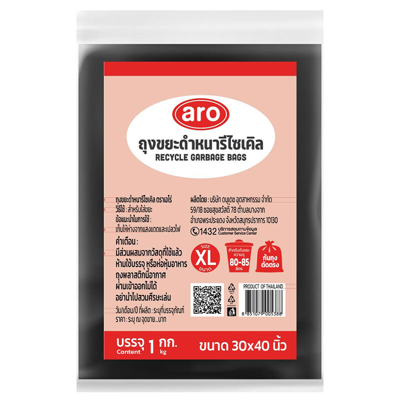 เอโร่ ถุงขยะดำรีไซเคิล แบบหนา 30x40 นิ้ว 1 กก.