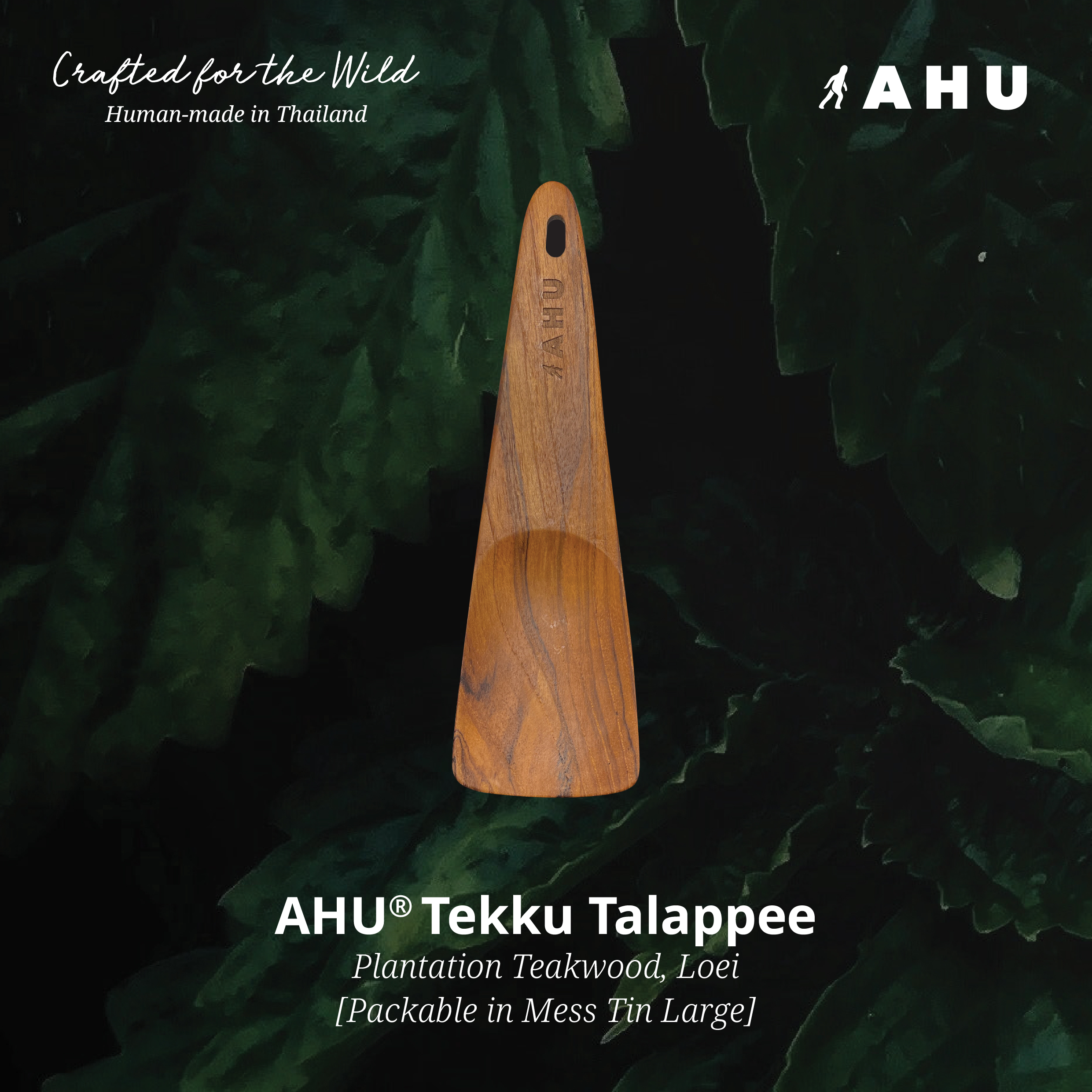 AHU Tekku Talappee [ตะลัพพี ทัพพี] ตะหลิวกึ่งทัพพี ปลายตัดตรงแบบตะหลิว มีความลึกแบบทัพพี คอโค้ง ปลาย-ด้าม-หัว เป็นหนึ่งเดียวกันด้วยไม้สักชิ้นเดียว กับรูปทรงที่แปลกตาโดยอะฮู ใช้ไม้สักปลูกจ.เลย ผ่านมือช่างแดงและครอบครัว finish ด้วยออยล์ ใช้ทำอาหารต้มผัดแกงทอด ในแคมป์ ในบ้าน หรือในป่า ก็จัดได้ ขนาดกระทัดรัดเน้นพกพา สามารถเก็บใน Mess Tin Large ได้พอดีครับ . AHU Tekku Talappee ตะหลิวกึ่งทัพพี ไม้สักจ.เลย