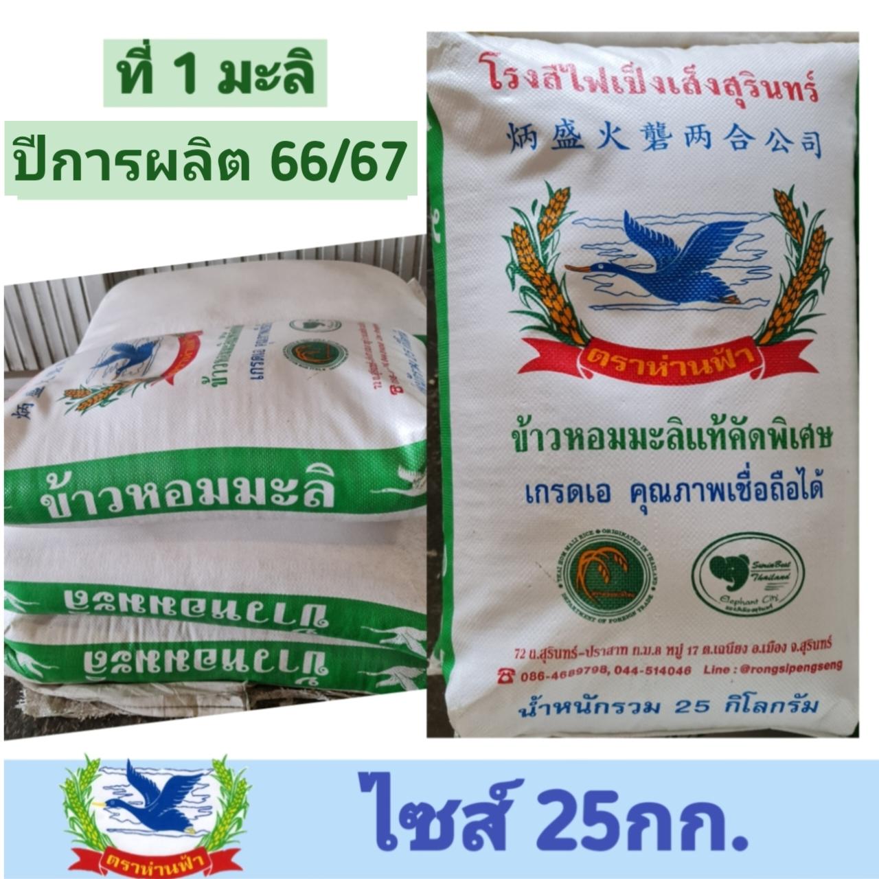 ข้าวหอมมะลิแท้คัดพิเศษปี66/67 - ข้าวใหม่ต้นฤดู (ข้าวที่1-ชนิดเต็มเมล็ด) ข้าวตราห่านฟ้า ปลอดสารเคมีอบมอด ขนาด 25 กก.