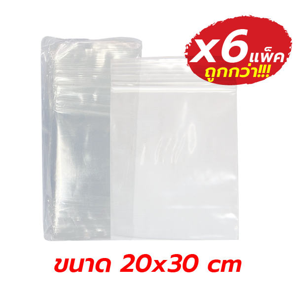 รหัส : ถุงซิป ซิปล็อก LDPE 20x30 cm แพ็ค 1 กิโลกรัม จำนวน 6 แพ็ค