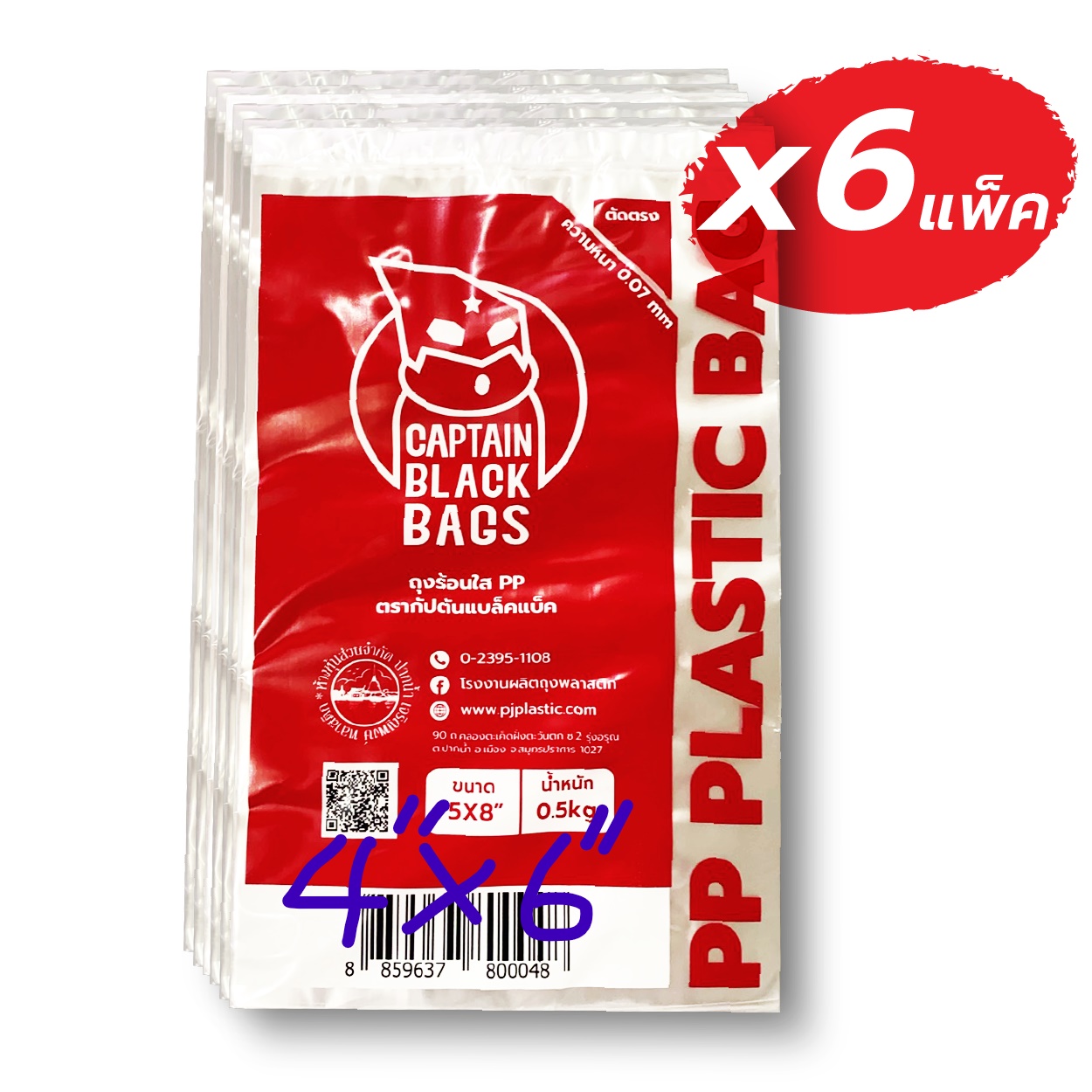 กัปตันแบล็กแบ็ค ถุงพลาสติกPP ใส (4 x 6 นิ้ว) แพ็ค 1 กิโลกรัม x 6 แพ็ค