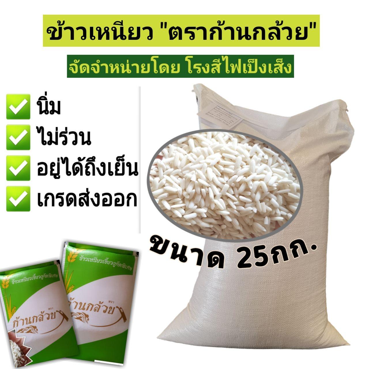 ข้าวเหนียวใหม่เขี้ยวงู ตราก้านกล้วย ชนิดเต็มเมล็ด เกรดส่งออก บรรจุ 25 กก.
