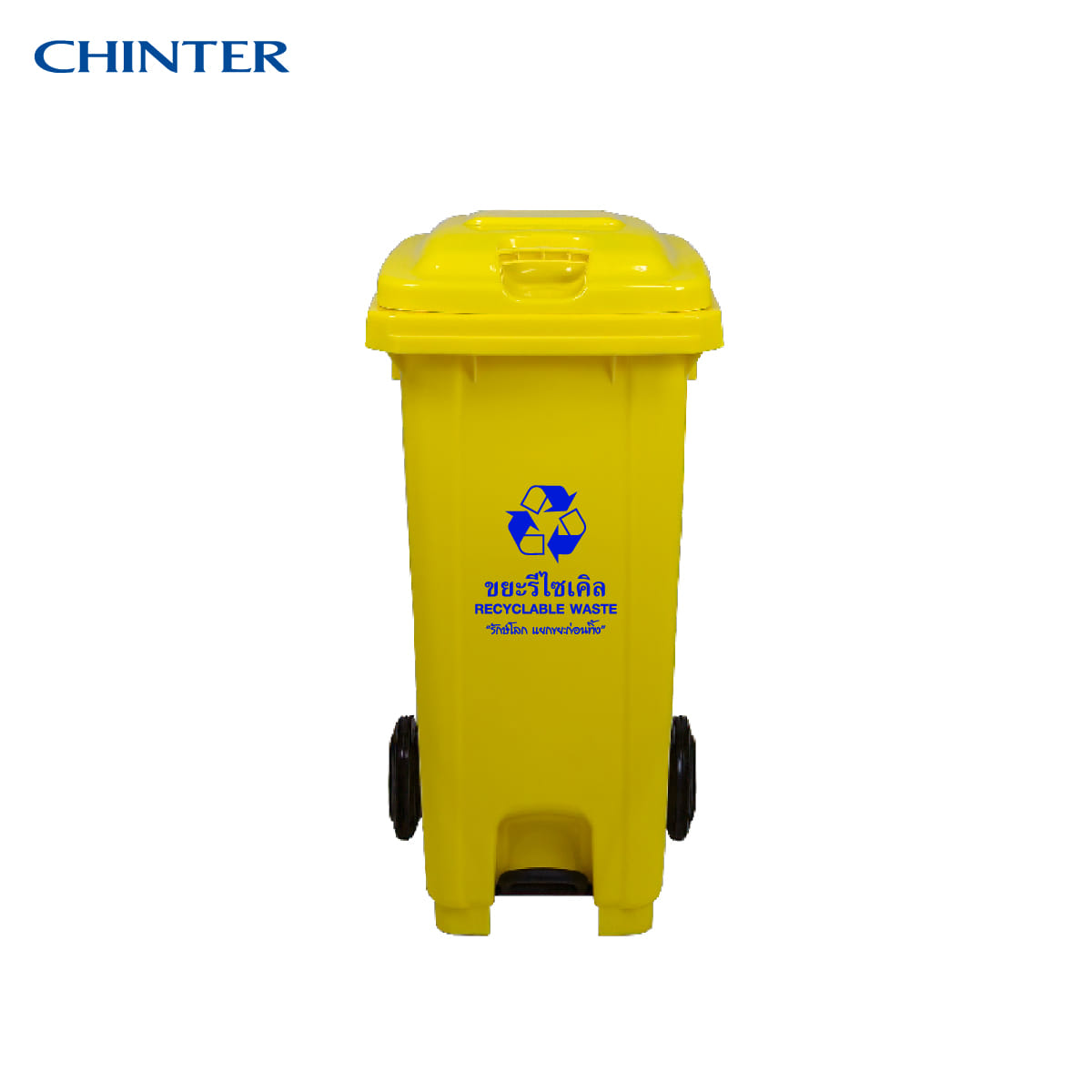ถังขยะพลาสติก สีเหลือง แบบเท้าเหยียบ มีล้อ 120 ลิตร สกรีนขยะรีไซเคิล - CHINTER F128-S946-C01 สกรีนรีไซเคิล