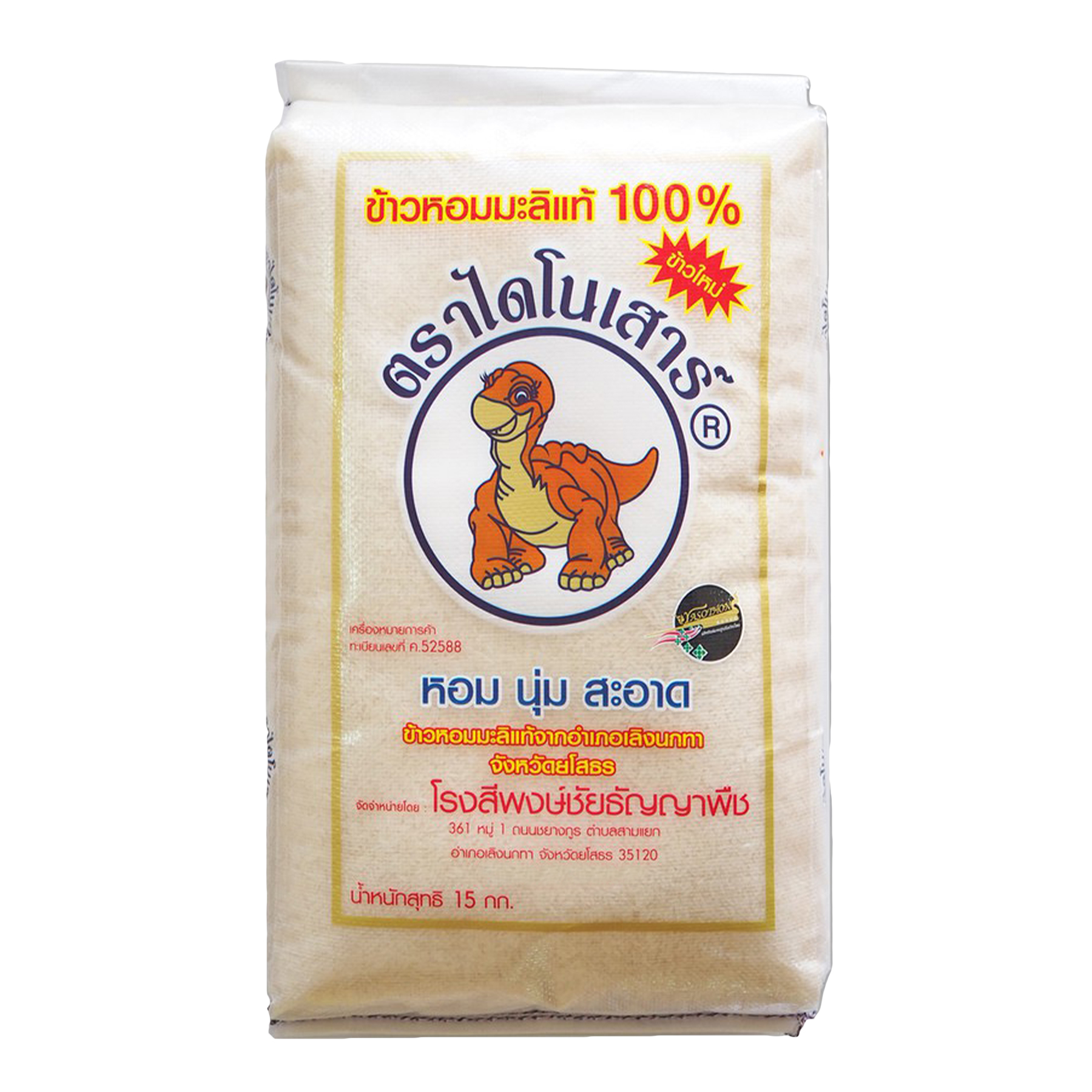 ข้าวใหม่ หอมมะลิแท้100% ไดโนเสาร์ 15 กิโลกรัม