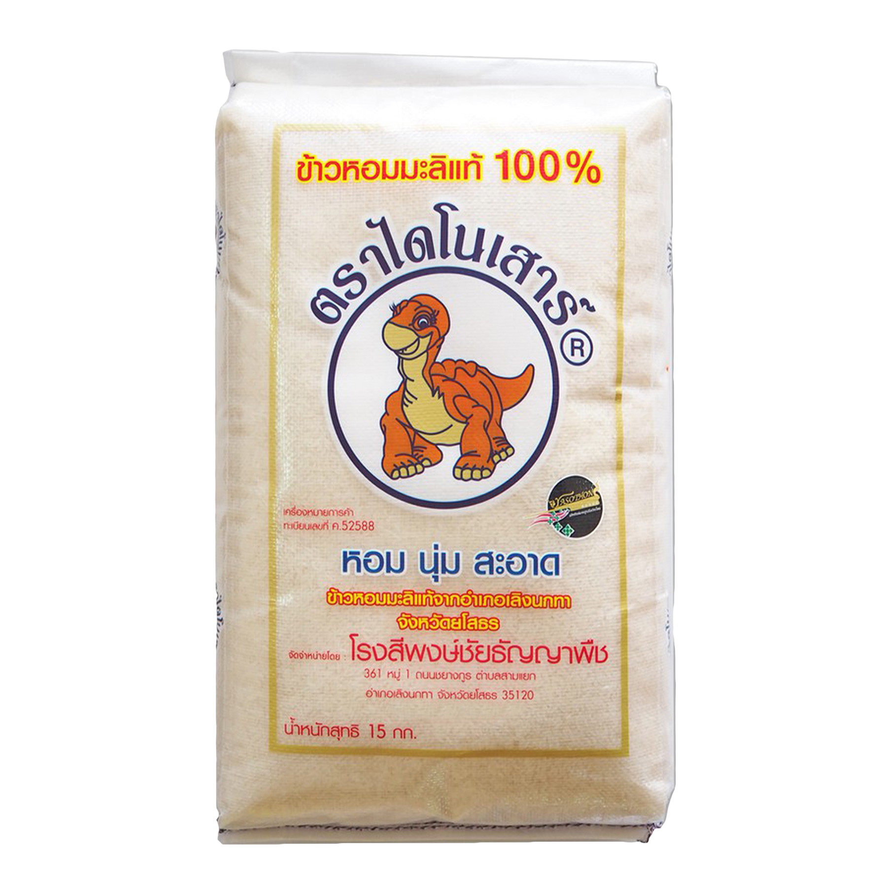 ข้าวเก่า หอมมะลิแท้100% ไดโนเสาร์ 15 กิโลกรัม