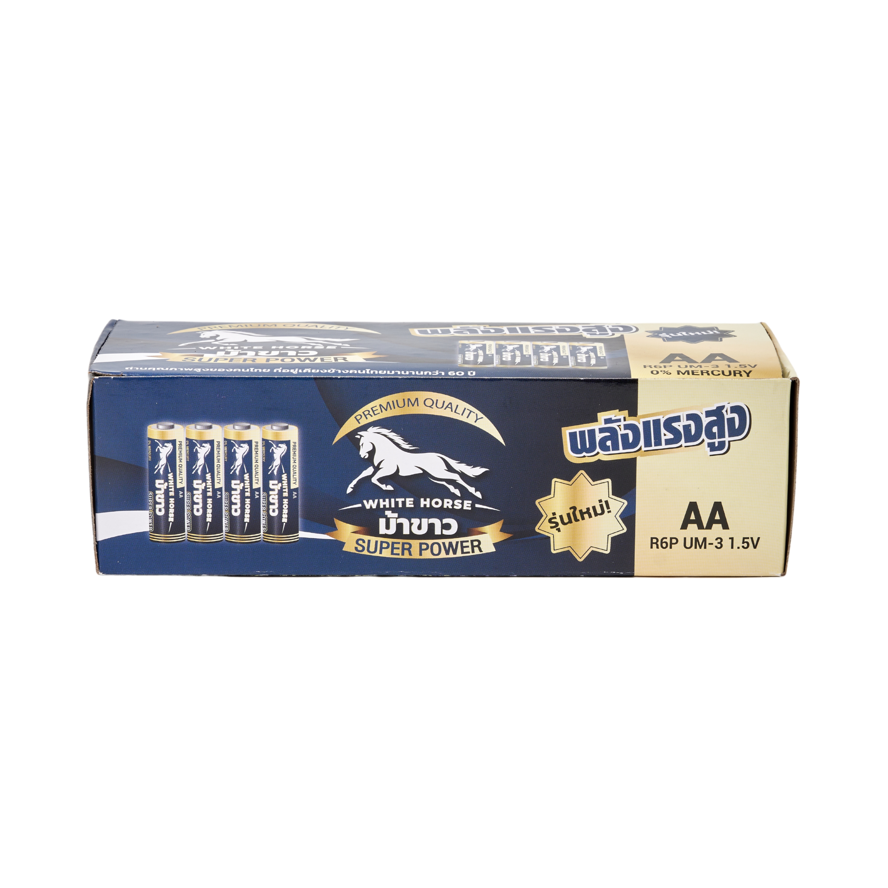 WHITE HORSE Premium Quality (ม้าขาว) ถ่านไฟฉาย AA 1.5V รุ่น Original แพ็ค 4 ก้อน x 15 แพ็ค