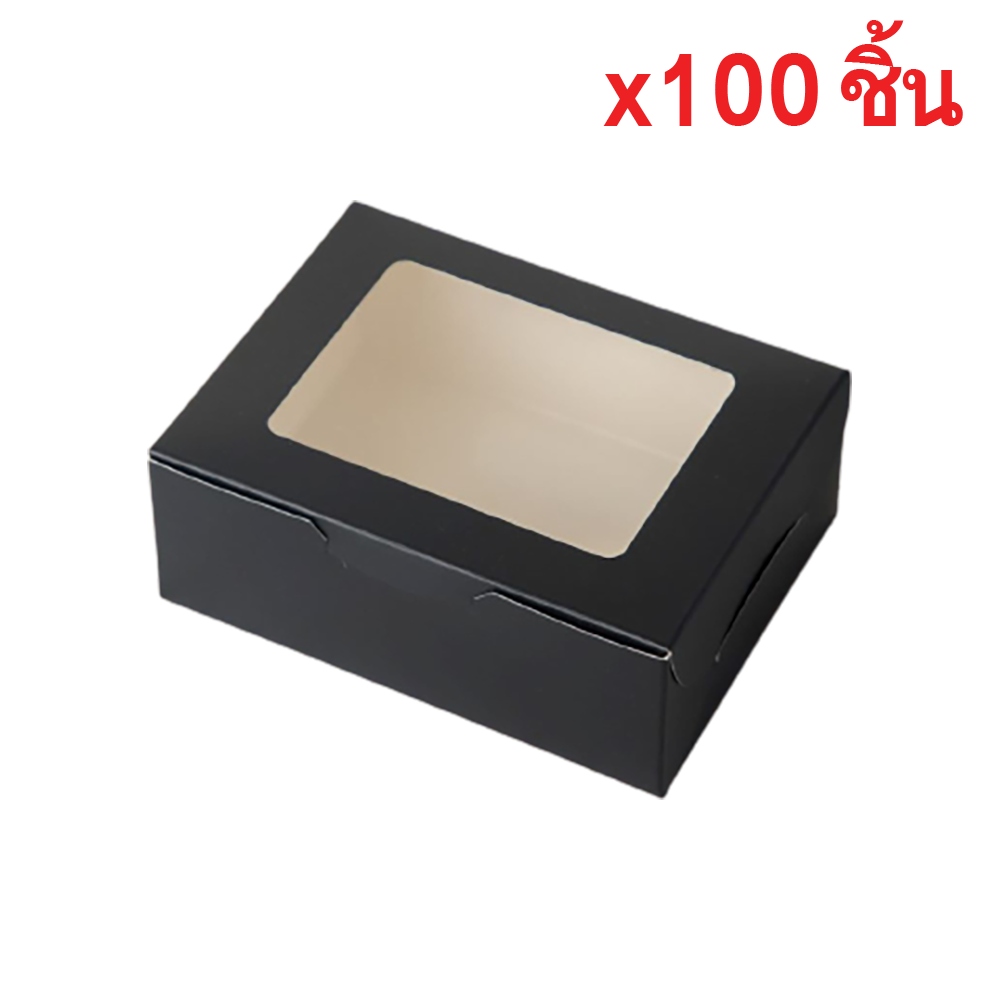 Quickpack - กล่องหน้าต่าง Signature จัดเบรค/Snack สีดำด้าน (M) ขนาด 12x16x6cm – 100 กล่อง