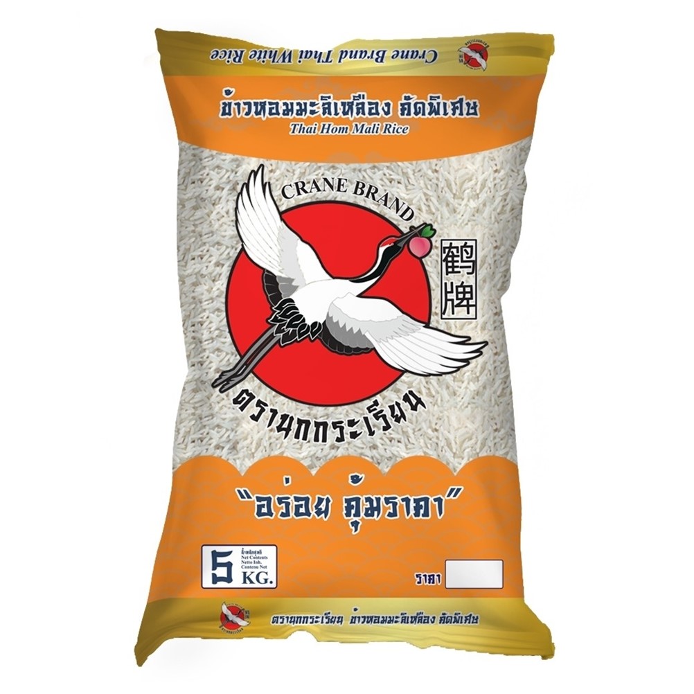 นกกระเรียน (ส้ม) ข้าวหอมมะลิเหลืองคัดพิเศษ ขนาด 5 กก.