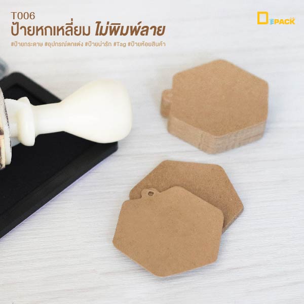 Depack T006-K(Non-Rope)(สีคราฟท์ไม่เชือก) ป้ายห้อยสินค้ารูปรูปหกเหลี่ยม ไม่พิมพ์ลาย (1 แพ็ค/ 50 ใบ)