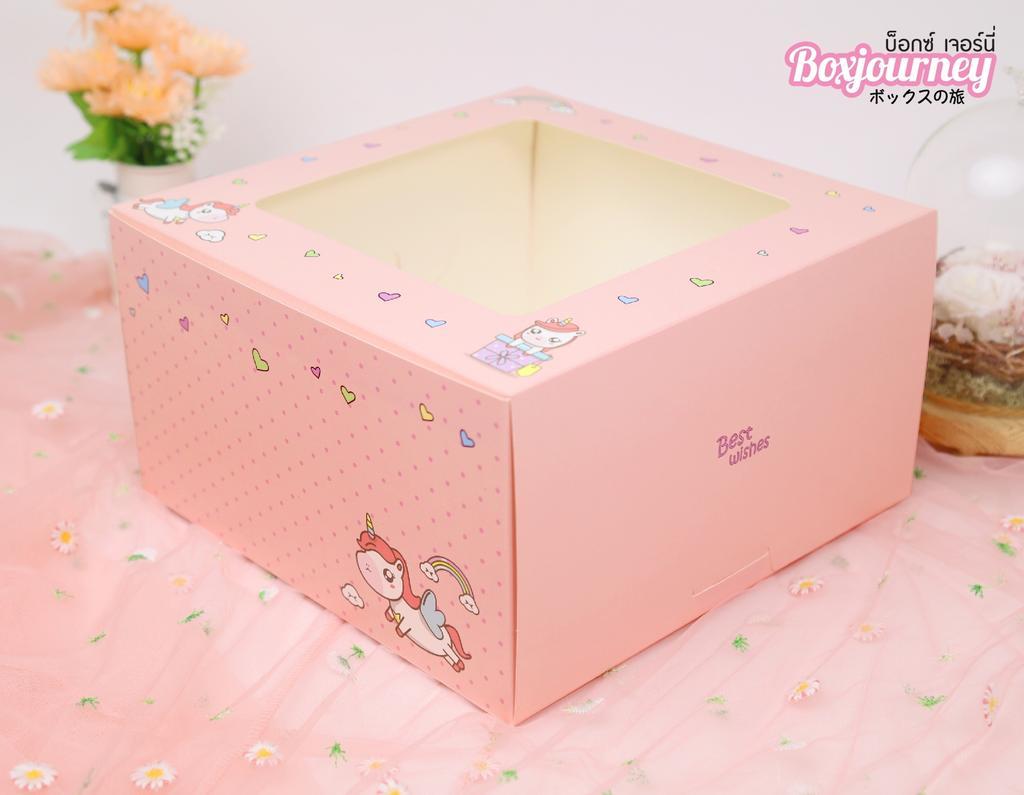 Boxjourney กล่องเค้ก 3 ปอนด์ ลาย เบบี้ยูนิคอร์น พิงค์ (ทรงสูง) (10 ใบ/แพค)