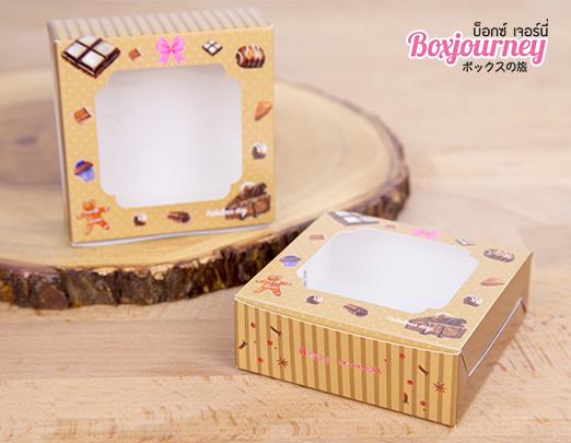 กล่องบราวนี่ 1 ชิ้น ลายช็อคโกแลต กล่องบราวนี่ ด้านในเคลือบกันซึม เหมาะกับใส่บราวนี่จำนวน 1 ชิ้น, ขนมเปี๊ยะ, ของขวัญ, ของชำร่วย,เครื่องประดับ ขนาด 3.2 x 3.2 x 1.1 นิ้ว (8.1 x 8.1 x 2.8 cm.) จำนวนแพคละ 50 ใบ
