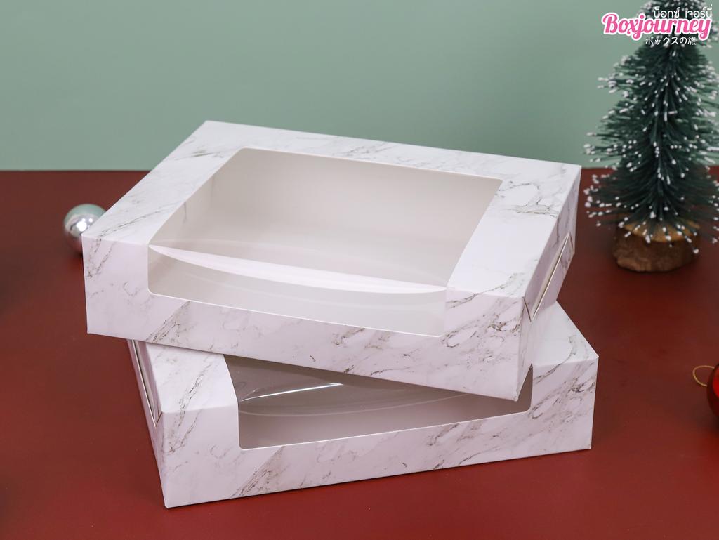 Boxjourney กล่องบราวนี่ หน้าต่างวีเชฟ ไวท์มาร์เบิ้ล 15x20x5 ซม. (20 ใบ/แพค)