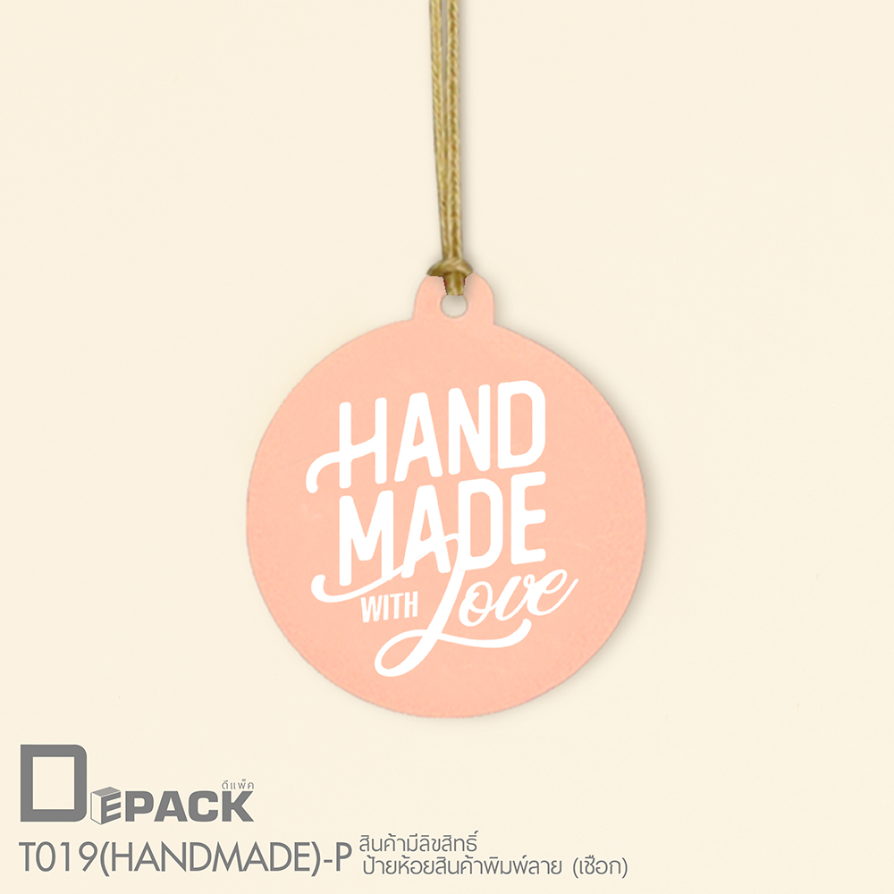 Depack T019(HANDMADE)-P(Rope)(สีชมพูเชือก) ป้ายห้อยสินค้าทรงกลมพิมพ์ลาย HANDMADE (1 แพ็ค/ 50 ใบ)