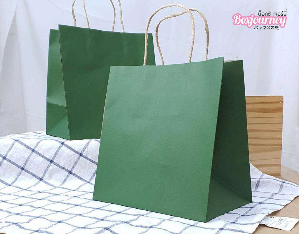 Boxjourney ถุงกระดาษคราฟท์ สีเขียว 23x15.2x23.7 ซม. (25 ใบ/แพค)