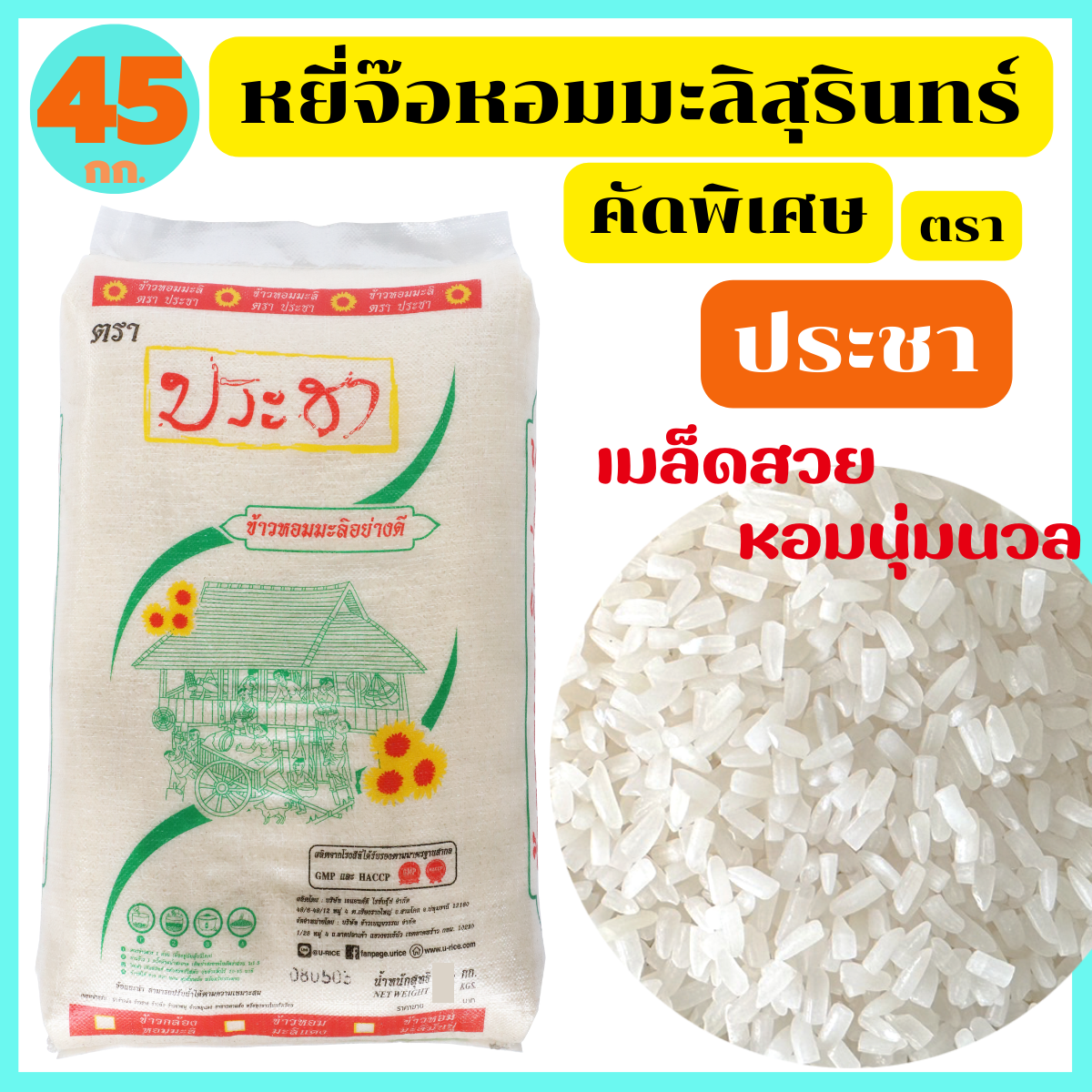 ประชา หยี่จ๊อข้าวหอมมะลิใหม่ สุรินทร์ คัดพิเศษ เมล็ดสวย อร่อย นุ่ม หอมฉุย ขนาด 45 กก.