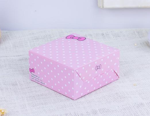 กล่องสแน็คเล็ก ลายโบว์ชมพู กล่องใส่อาหารว่าง จัดคอฟฟี่เบรค ผลิตจากกระดาษฟู้ดเกรดและใช้หมึกพิมพ์น้ำมันถั่วเหลือง ปลอดภัยต่อการใช้สัมผัสกับอาหาร ขนาด กว้าง 12.7 x ยาว 12.7 x สูง 6.5 ซม. (ขนาด 5x5x2.5 นิ้ว) 20 ชิ้น/แพค