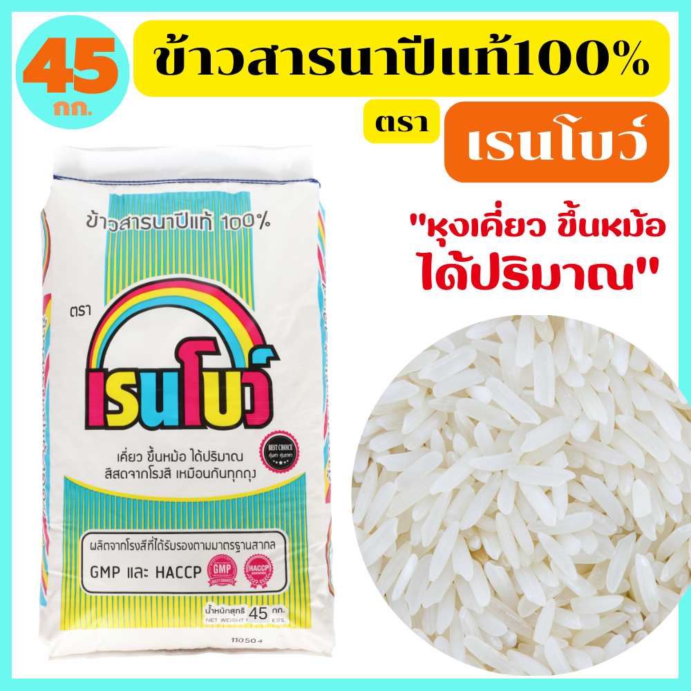 เรนโบว์ ข้าวเก่านครสวรรค์แท้ หุงขึ้นหม้อ ได้ปริมาณ เย็นแล้วนุ่มนวล อุ่นกี่ครั้งก็อร่อยเหมือนเดิม ขนาด 45 กก.