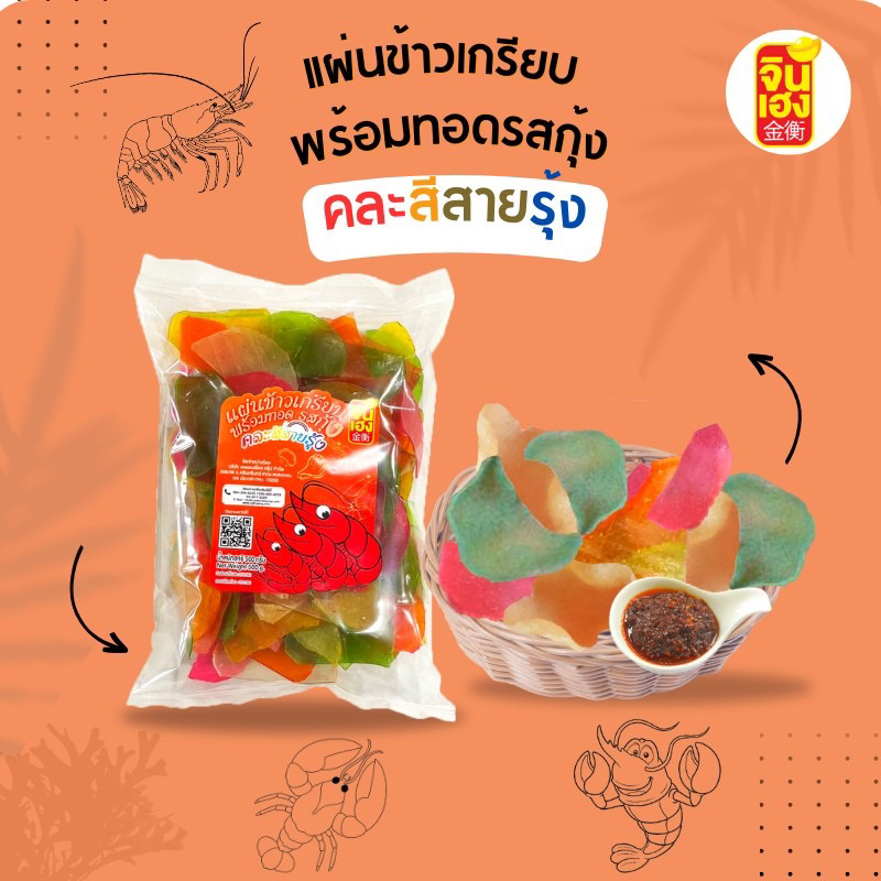 จินเฮง แผ่นข้าวเกรียบดิบ รสกุ้งคละสีสายรุ้ง 500 กรัม #พร้อมทอด