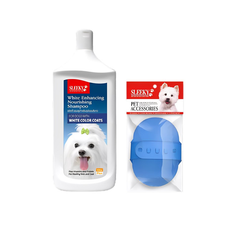 สลิคกี้ แชมพูบำรุงขนสุนัขขนสีขาว พร้อมแปรงอาบน้ำแบบปรับได้ 1 ล.