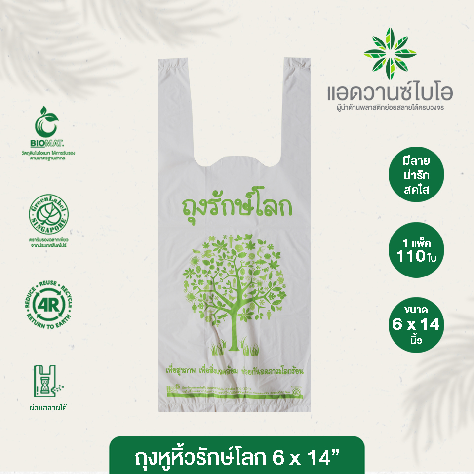 ถุงหูหิ้วรักษ์โลก 6x14 สีขาวนม x 3 แพ็ค