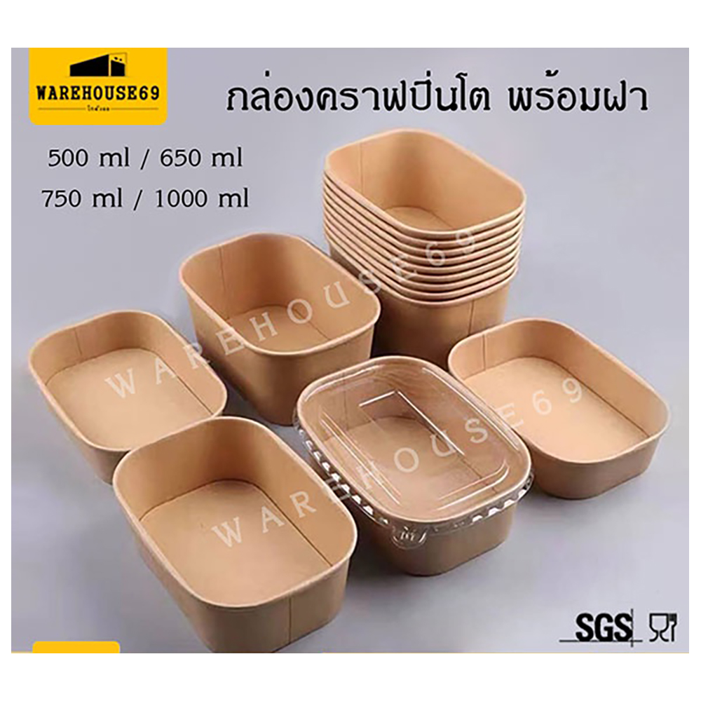 BIOPACK กล่องใส่อาหารพร้อมฝา (กล่องปิ่นโต 500 ml 50 ใบ) กล่องปิ่นโต ชามกระดาษ ชามสลัด ชามใส่ก๋วยเตี๋ยว ชามใส่อาหาร ชามกระดาษคราฟท์พร้อมฝา [[50 ชุด]]
