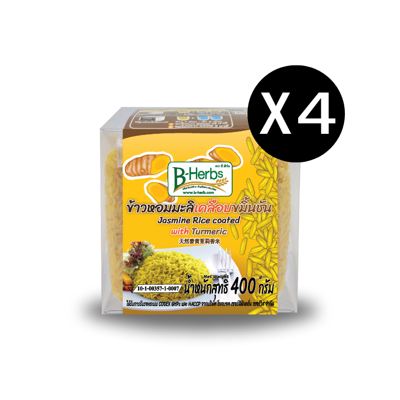 ข้าวหอมมะลิเคลือบสมุนไพรขมิ้นชัน แบรนด์ B-HERBS ปริมาณบรรจุ 1 กล่อง น้ำหนัก 400 กรัม