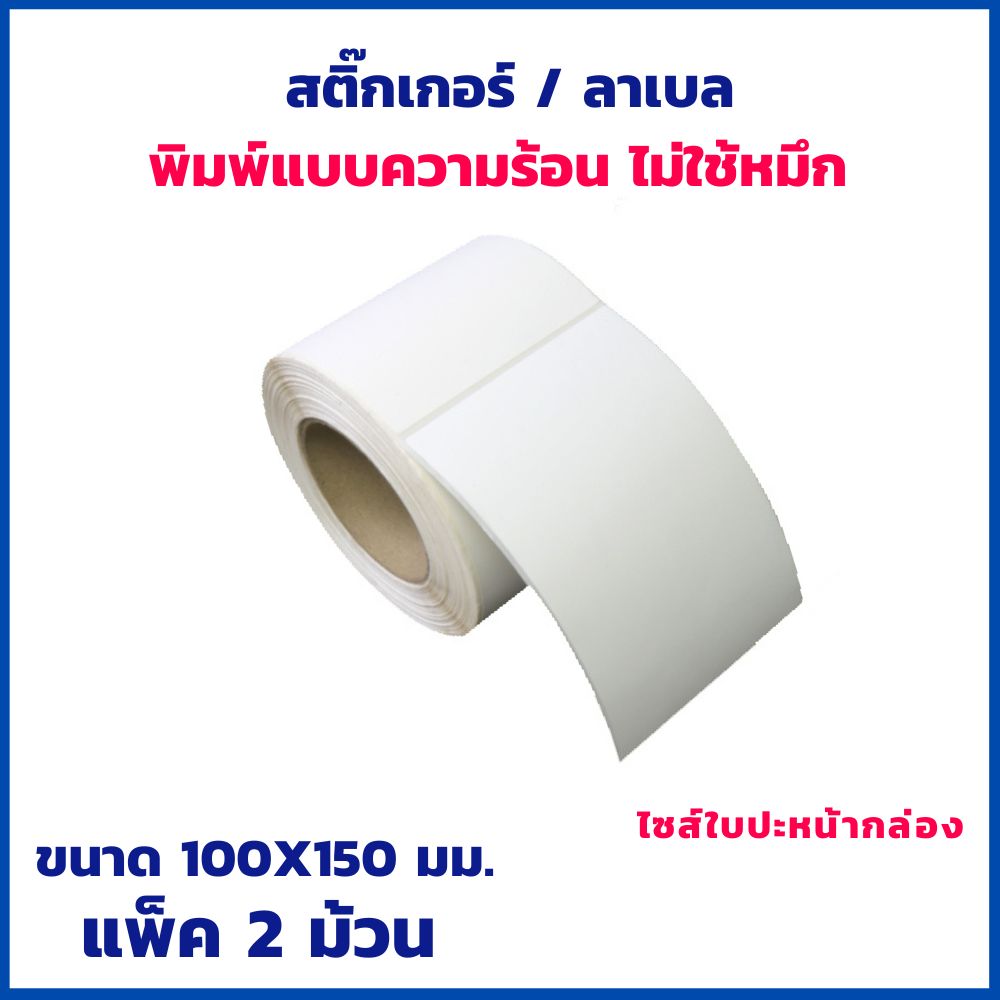 กระดาษสติกเกอร์แบบความร้อน ขนาด 10 x 15 ซม. ไม่ต้องใช้หมึก 250 ดวงต่อม้วน สำหรับพิมพ์ใบปะหน้า Lazada Shopee ขนส่งต่างๆ แพ็ค 2 ม้วน