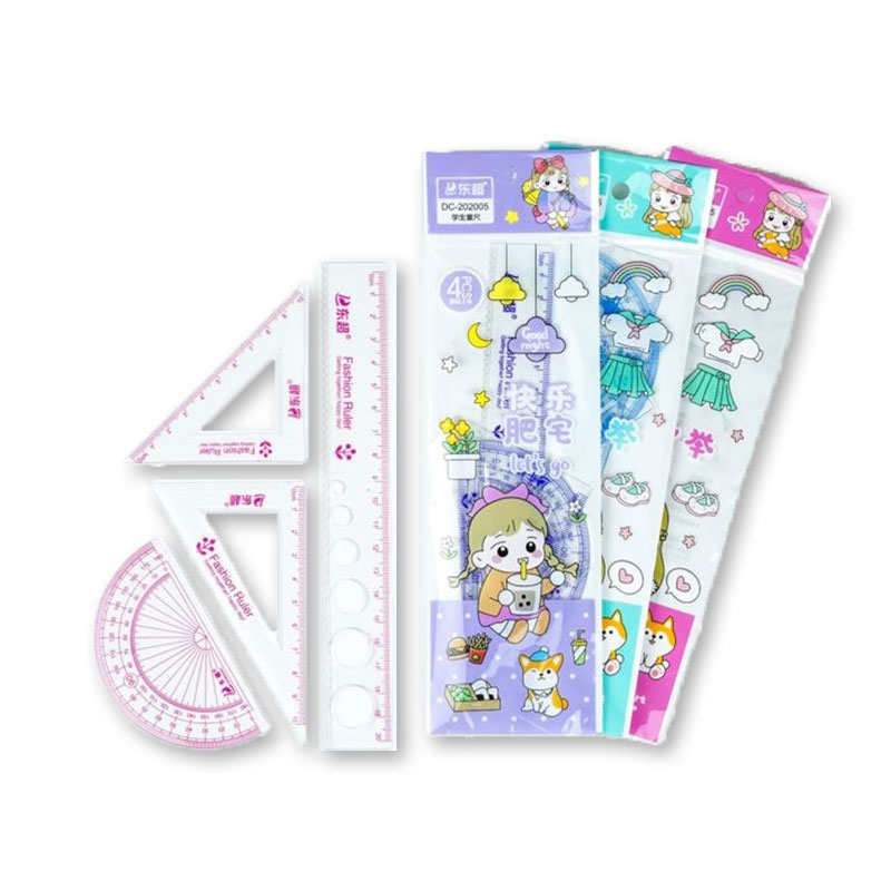 - 1 ชุดประกอบด้วย ไม้บรรทัดรูปทรงต่างๆ 4 ชิ้น - มีน้ำหนักเบา พกพาง่าย - สเกลวัดชัดเจน ง่ายต่อการวัด