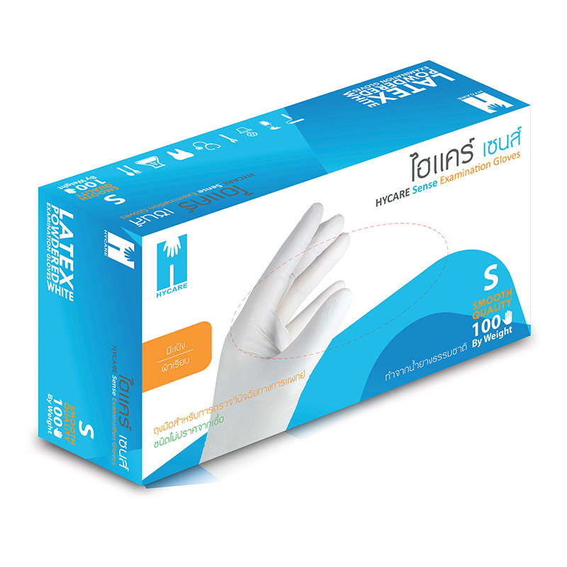 ไฮแคร์ ถุงมือยาง แบบมีแป้ง ขนาด S x 100 ชิ้น