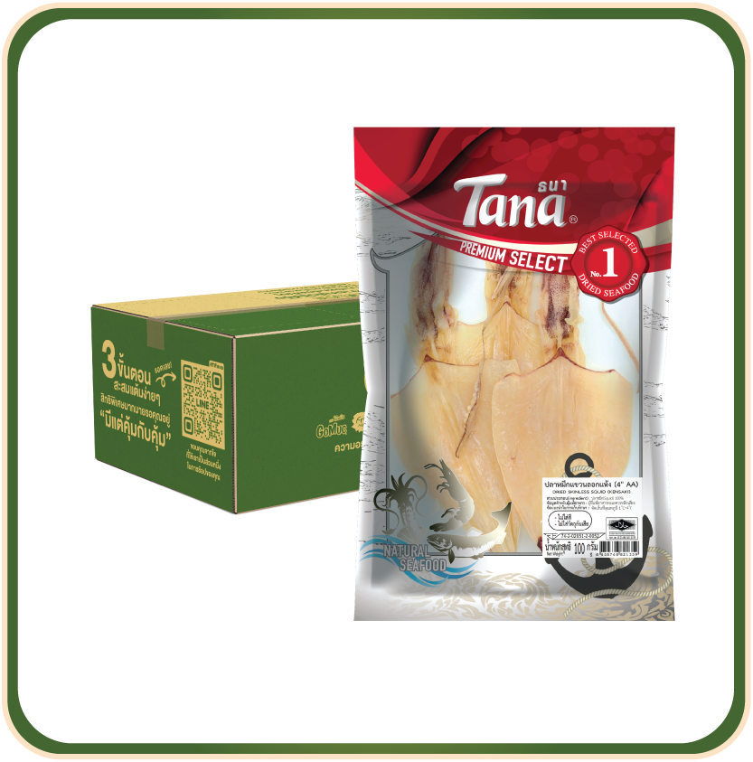 ปลาหมึกแขวนลอกแห้ง 4 นิ้ว AA (Premium) 100 กรัม [Tana | ธนา] DRIED SKINLESS SQUID (KENSAKI) เนื้อแห้ง อาหารแห้ง อาหารแปรรูป ส่วนประกอบ (ingredient) : ปลาหมึก (Squid) 100% ข้อมูลสำหรับผู้แพ้อาหาร : ผู้ที่แพ้อาหารทะเลควรหลีกเลี่ยง ข้อแนะนำในการเก็บรักษา : จัดเก็บที่อุณหภูมิ 1 - 4 องศา - ไม่ใส่สี - ไม่ใส่วัตถุกันเสีย ---------------------------------------------------------------------------------------------------- 📌รับรองสินค้าคุณภาพส่งจากจากบริษัท ®️ ✔️ ผลิตภัณฑ์ ที่มีการคัดสรรจากวัตถุดิบที่มีคุณภาพ ✔️ มีการรับรองจาก อย. (คุ้มครอง ห่วงใย ใส่ใจคุณภาพ) ✔️ นำมาผ่านกระบวนการผลิตที่ทันสมัยตามหลัก GMP HACCP มาตรฐานสากล 📌รายละเอียดการขนส่ง ✅ จัดส่งทุกวันจันทร์ - เสาร์ (หยุดทุกวันอาทิตย์) ⏰ ตัดรอบเวลา 08.00 ของทุกวัน หากซื้อสินค้าหลัง เวลา 08.00 น. จะถูกจัดส่งวันถัดไป (หยุดทุกวันอาทิตย์) 🚚 จัดส่งใช้เวลา 2 - 4 วัน (ไม่รวมวันที่สั่งซื้อ)