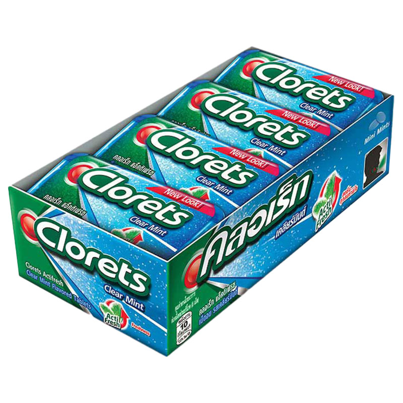 - ชื่อสินค้า: คลอเร็ท แอ็คติเฟรช เม็ดอม รสเคลียร์มินต์ แพ็ค 12 กล่อง - แบรนด์: คลอเร็ท - ปริมาณบรรจุ: 12 ชิ้น