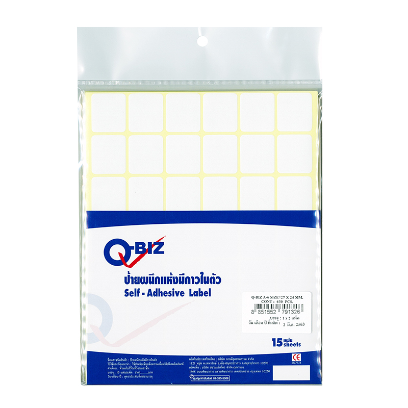คิวบิซ ป้ายสติ๊กเกอร์ ขนาด A6 จำนวน 15 แผ่น แผ่นละ 42 ป้าย แพ็ค 2 ห่อ
