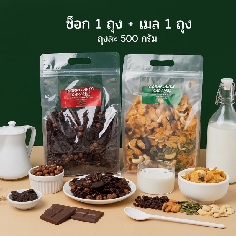 Zerplaii คอนเฟลกคาราเมล 1 ถุง + คอนเฟลกช็อกโกแลต 1 ถุง ถุงละ 500 กรัม