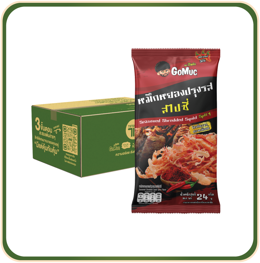 [ขายยกลัง 24 ซอง] โกหมึก หมึกหยองปรุงรสสไปซี่ 24 กรัม