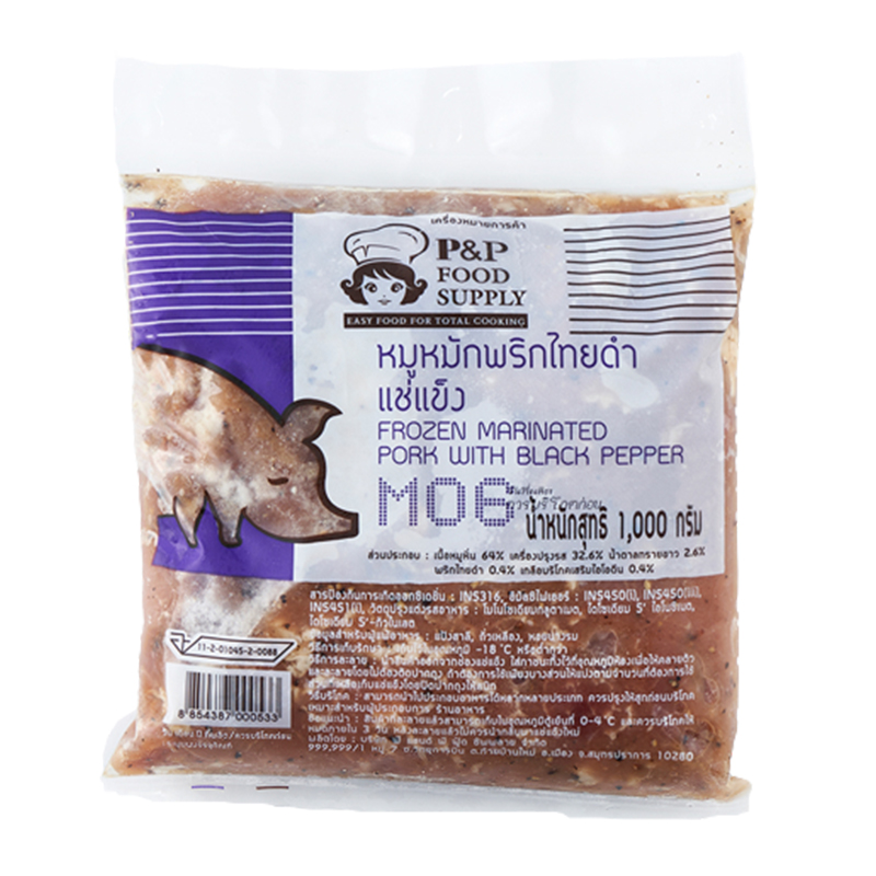พีแอนด์พีฟู้ด หมูหมักพริกไทยดำแช่แข็ง 1 กก.