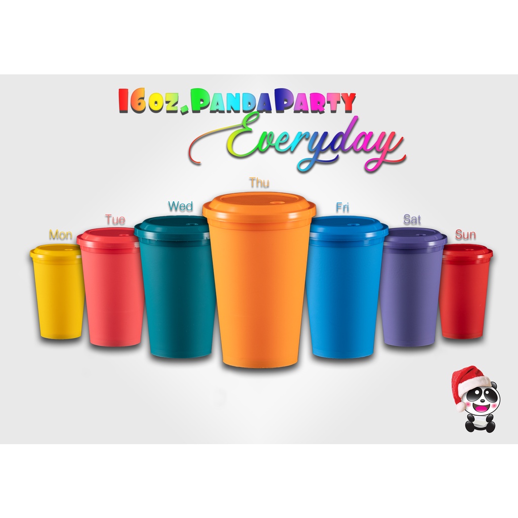 Panda Outlet แก้ว16ออนซ์แพนด้าปาร์ตี้+ฝา90มิล(Set C) คละสี (แพ็ค20ชิ้น)
