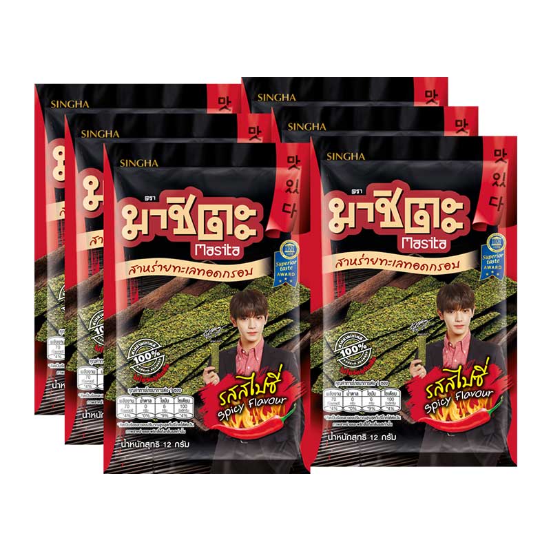 - ชื่อสินค้า: มาชิตะ สาหร่ายทะเลทอดกรอบ รสสไปซี่ 12 ก. x 6 - แบรนด์: มาชิตะ - ปริมาณบรรจุ: 6 หน่วย