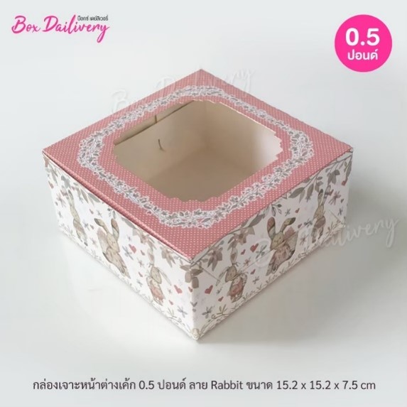 กล่องเค้ก ไซส์ 1/2ปอนด์ พิมพ์ลาย แพค100ใบ -Rabbit
