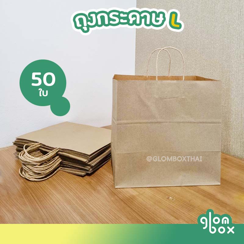 Glombox ถุงกระดาษ ถุงกระดาษหูหิ้ว สีคราฟท์ 30 x 18 x 29.5 ซม. ไซส์ L (50 ใบ/แพ็ค)