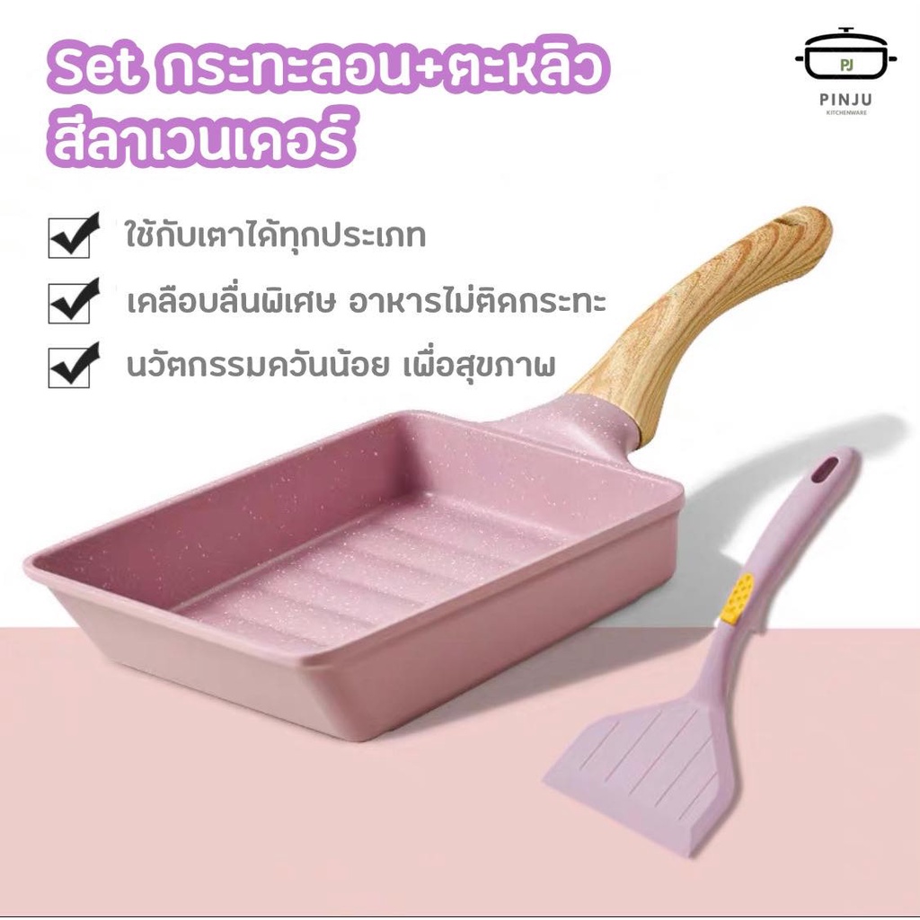 PINJU กระทะไข่ม้วน เคลือบหินอ่อน (ลาเวนเดอร์ set) กระทะทอดไข่ กระทะสี่เหลี่ยม กระทะอาหารเช้า กระทะไข่ กระทะเคลือบ