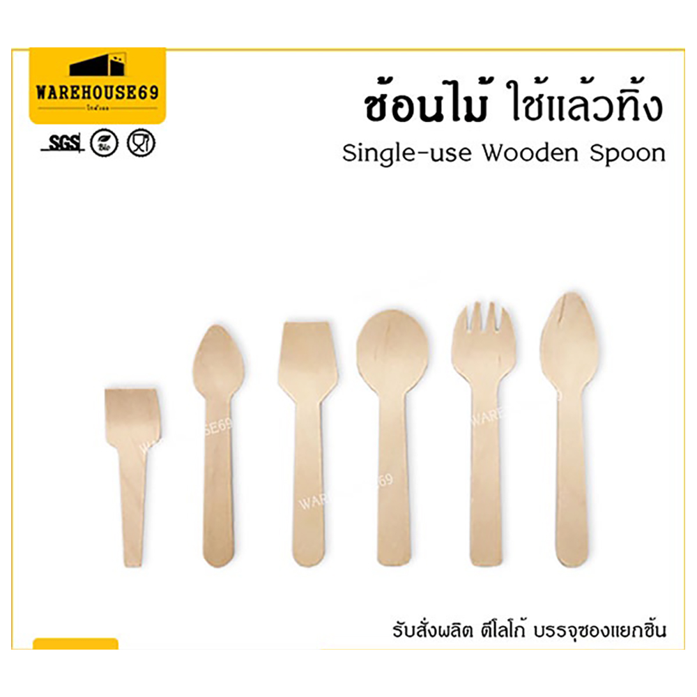 BIOPACK ช้อนไม้ ช้อนขนม ช้อนตักไอติม (ช้อนหัวตัด 10 ซม.) ช้อนใช้แล้วทิ้ง ช้อนไม้ ส้อมไม้ รักษ์โลก ย่อยสลายได้ [[100 ชิ้น]]