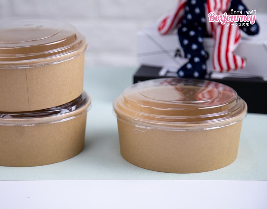 Boxjourney กล่องอาหารกระดาษคราฟ ทรงกลม 500ml. พร้อมฝา (50 ใบ/แพค)