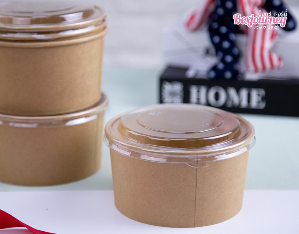 Boxjourney กล่องอาหารกระดาษคราฟ ทรงกลม 1000ml.พร้อมฝา (50 ใบ/แพค)