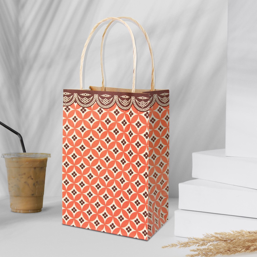 Matapat ถุงหูหิ้วกระดาษลายลำดวน (ส้มลำดวน) ถุงหิ้วลายไทย ถุงหิ้วกระดาษ ถุงหูหิ้วกระดาษ ถุงขนม ถุงจัดเบรค ถุงเทศกาล ถุงของขวัญ (50ใบ)