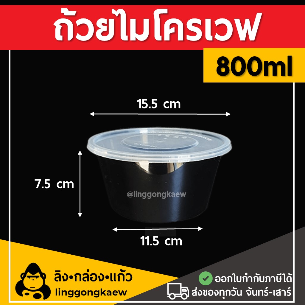 ลิงกล่องแก้ว ถ้วยพลาสติก ถ้วยใส่อาหาร ถ้วยไมโครเวฟ ชามพลาสติก กระปุกพลาสติก ดำ 800 มล. [50 ใบ]