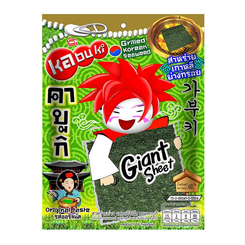- ชื่อสินค้า: คาบูกิ สาหร่ายเกาหลีย่างกรอบ รสออริจินัล 50 กรัม - แบรนด์: คาบูกิ - ปริมาณบรรจุ: 1 ชิ้น