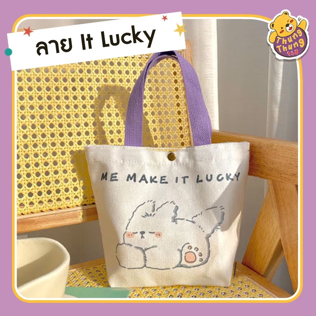 Matapat ถุงผ้า (It Lucky สายสีม่วง) กระเป๋าผ้าสไตล์ญี่ปุ่น กระเป๋าถือสะพายใหล่ กระเป๋าลายน่ารักๆ สินค้าพร้อมส่งจากไทย