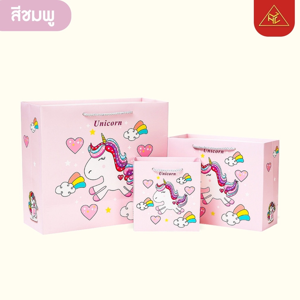 Matapat ถุงกระดาษของขวัญลายยูนิคอร์น (หูหิ้วสีฟ้า,ขนาดเล็ก (S)) ถุงกระดาษน่ารักหูเจาะ ถุงกระดาษพรีเมี่ยม ถุงหูหิ้ว (พร้อมส่งในไทย)